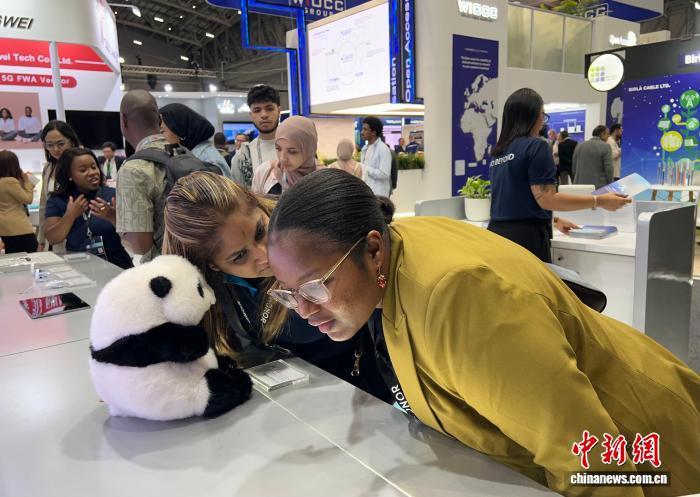 當(dāng)?shù)貢r(shí)間11月11日,第28屆非洲科技節(jié)在南非開普敦開幕。圖為與會嘉賓在中國企業(yè)展區(qū)了解接入人工智能系統(tǒng)的毛絨玩具。 中新社記者 孫翔 攝