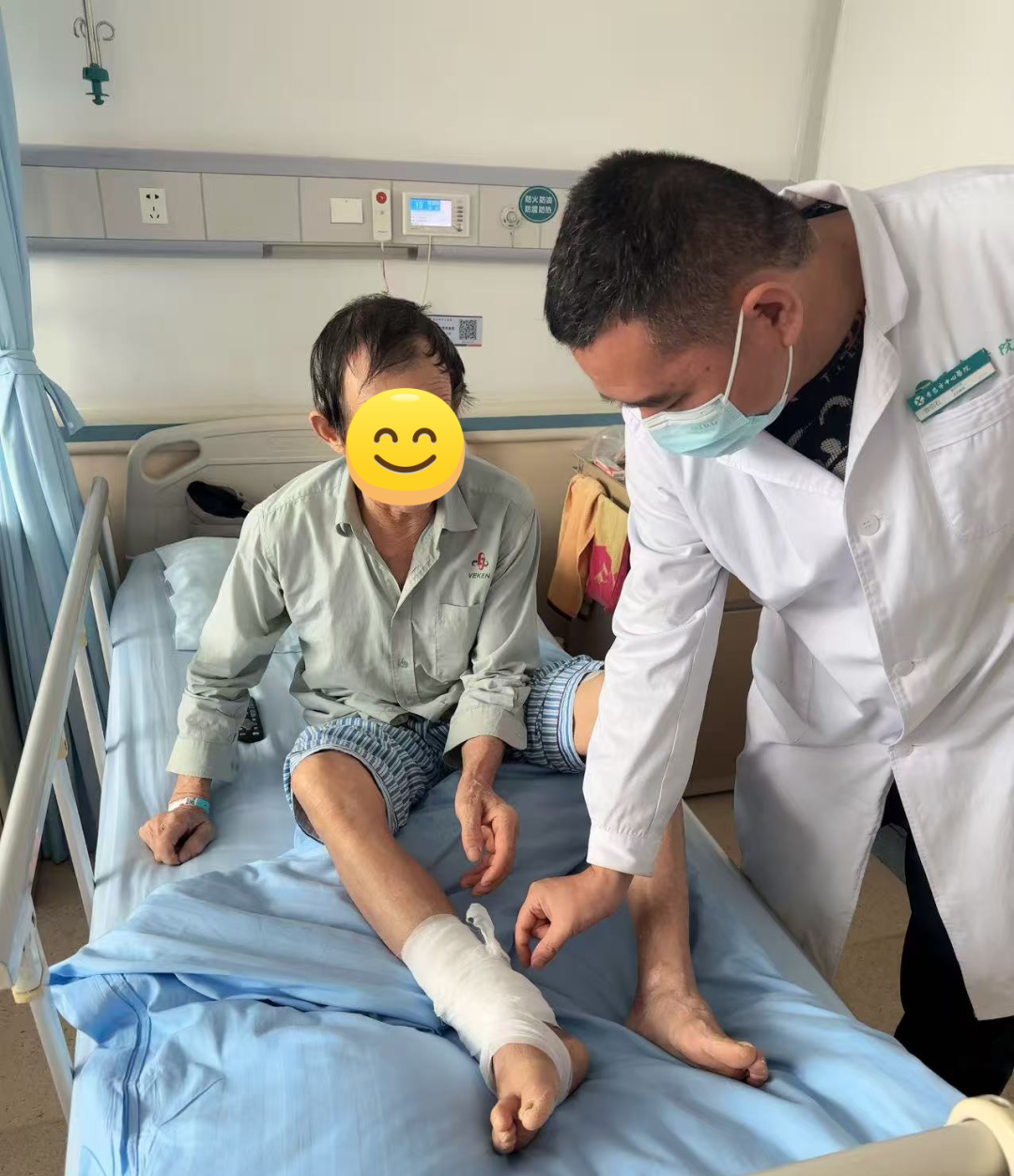 此前,程大爺因車禍導致右下肢大面積皮膚壞死伴跟腱部分明顯外露,經(jīng)該院急診外科多學科團隊(MDT)的精準救治,成功實現(xiàn)“爛腿”再生,康復出院并可自主行走。