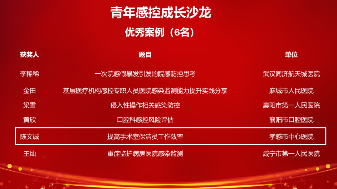 荊楚網(wǎng)(湖北日?qǐng)?bào)網(wǎng))訊(通訊員 陳軍)近日,在華中科技大學(xué)同濟(jì)醫(yī)學(xué)院附屬同濟(jì)醫(yī)院與國(guó)家重大公共衛(wèi)生事件醫(yī)學(xué)中心聯(lián)合主辦的“第一屆同濟(jì)感控學(xué)術(shù)會(huì)議”上,孝感市中心醫(yī)院手術(shù)室護(hù)士陳文誠(chéng)榮獲“優(yōu)秀青年感控學(xué)者”稱(chēng)號(hào)。由陳文誠(chéng)主導(dǎo)的感控案例《提高手術(shù)室保潔人員工作效率》,在會(huì)議同期舉辦的第三屆青年感控成長(zhǎng)沙龍中表現(xiàn)出色,榮獲“優(yōu)秀案例”。