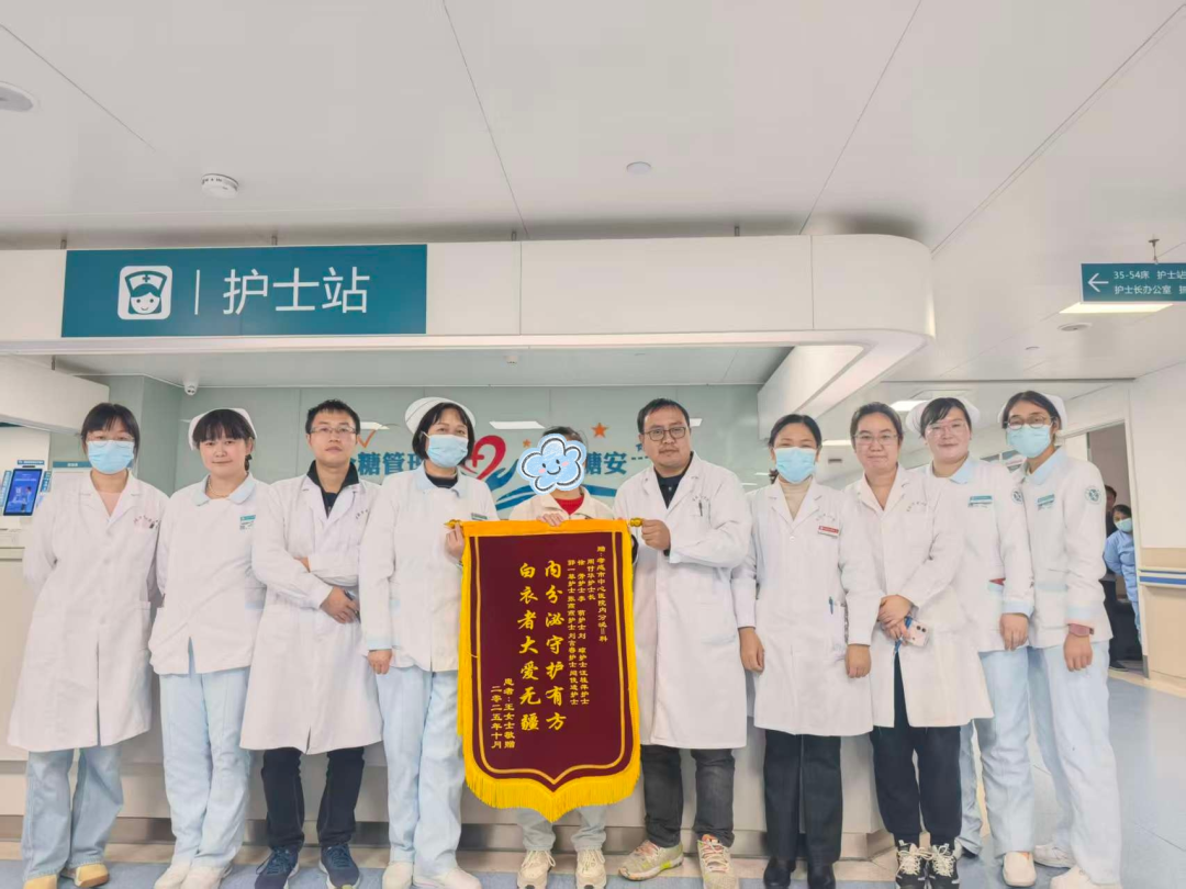 荊楚網(wǎng)(湖北日報網(wǎng))訊(通訊員 周付華)“內(nèi)分泌守護有方,白衣者大愛無疆”“解糖脂代謝之困,施仁術(shù)濟世之懷”。近日,孝感市中心醫(yī)院內(nèi)分泌科II病區(qū)收到兩面紅底金字的錦旗。剛康復(fù)出院的王阿姨(化名)專程送來這份感謝,錦旗上的字跡,既是患者的真誠贊譽,也記錄了一場救治糖尿病重癥并發(fā)癥患者的攻堅過程。