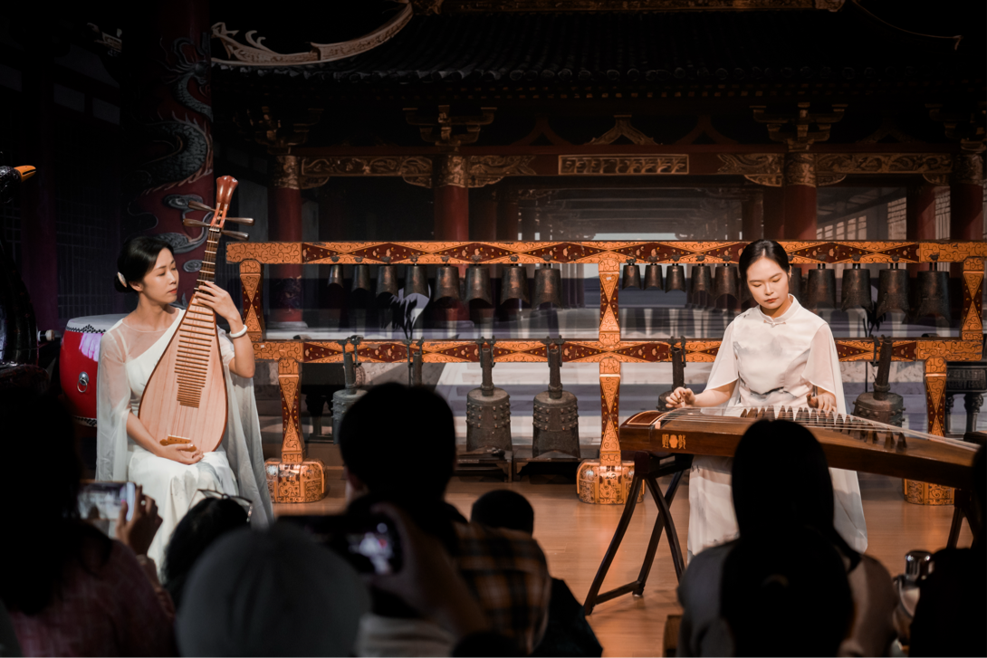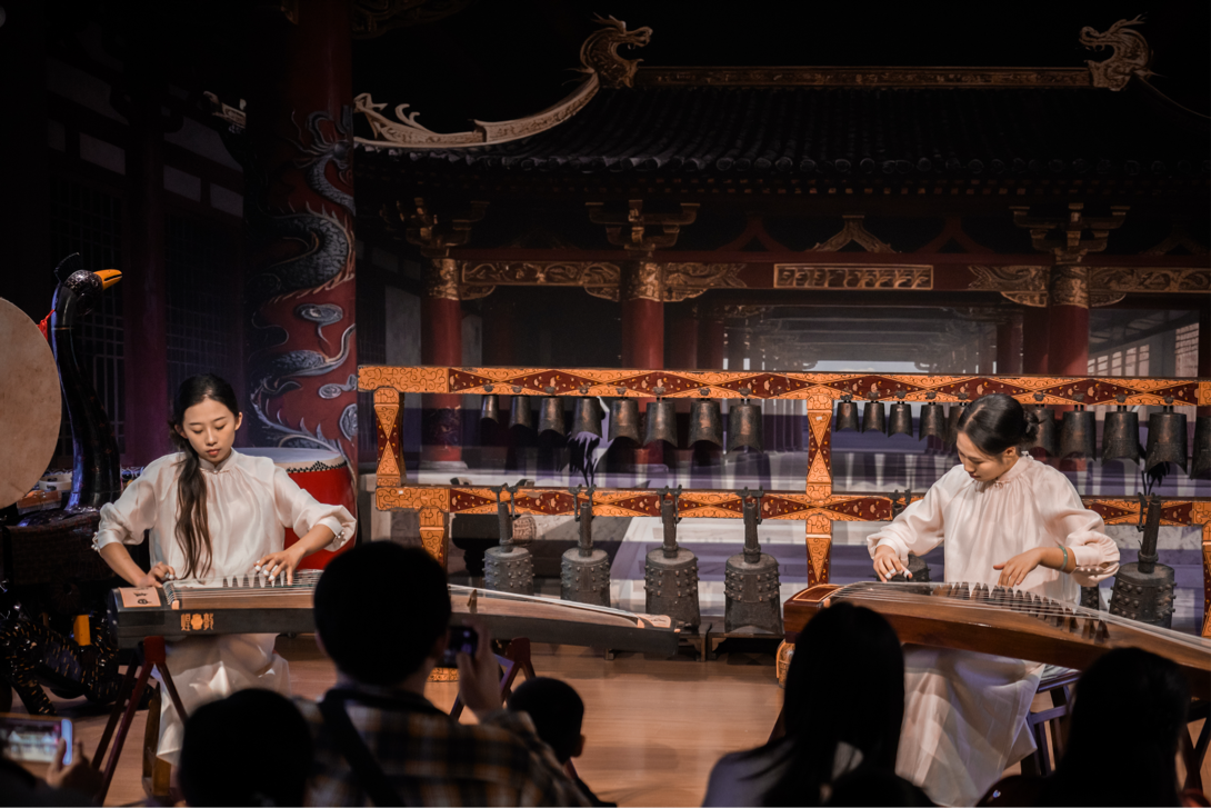 荊州博物館以“讓文物從展柜走向舞臺”為底色:編鐘廳的古雅空間成為演出主場,戰(zhàn)國漆器展柜與《紀(jì)南城·砥礪》的編磬聲共振,曾侯乙墓出土的羽調(diào)式音階融入樂曲創(chuàng)作,館內(nèi)藏有的楚文化脈絡(luò)更成了音樂會“楚墟新聲”板塊的核心靈感源。從章華臺到銅綠山,荊州博物館的考古資源,讓沉睡的遺址變成了旋律里的“楚魂載體”。