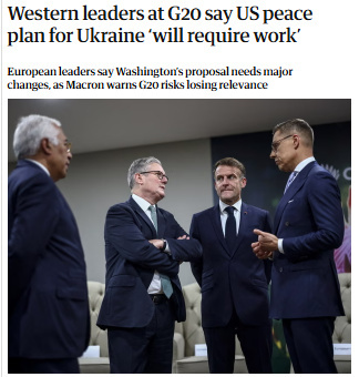 中新網(wǎng)11月23日電 據(jù)英國《衛(wèi)報》報道,當(dāng)?shù)貢r間22日,歐洲理事會、歐盟委員會、德國、法國、加拿大、愛爾蘭、意大利、西班牙、荷蘭、英國、挪威、芬蘭等多方發(fā)表聯(lián)合聲明,認(rèn)為美方就結(jié)束烏克蘭危機提出的“28點”新計劃可以作為基礎(chǔ),但仍需要額外的工作。