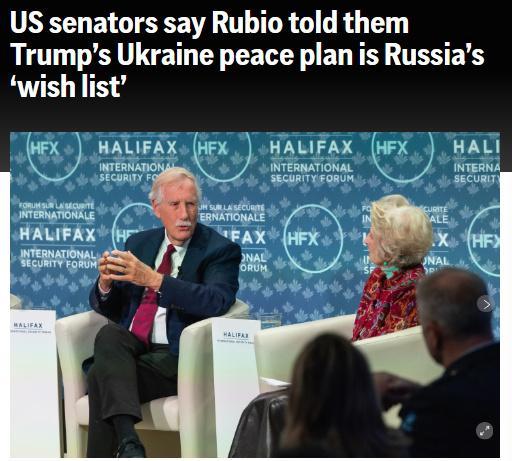 另據(jù)美國廣播公司(ABC)報(bào)道,幾名匿名美國官員透露,魯比奧在電話中告知他們,這項(xiàng)“28點(diǎn)”和平計(jì)劃并非由美國制定。