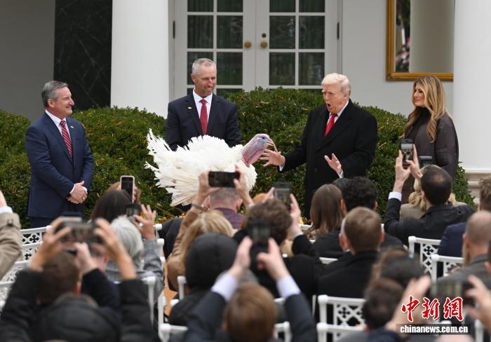 當(dāng)?shù)貢r(shí)間11月25日,華盛頓,美國(guó)總統(tǒng)特朗普在白宮赦免2025年感恩節(jié)幸運(yùn)火雞“咯咯”(Gobble)。中新社記者 陳孟統(tǒng) 攝