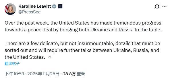 △美國(guó)白宮新聞秘書萊維特25日發(fā)布聲明稱:“還有一些棘手但并非不可克服的關(guān)鍵細(xì)節(jié)亟待解決“。