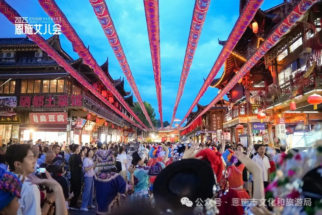 作為三張名片之一的“恩施女兒會(huì)”,如今已成為極具吸引力和傳播力的核心IP。2025年女兒會(huì)期間,傳統(tǒng)與創(chuàng)新的緊密結(jié)合,“我要回村唱山歌”將女兒會(huì)“情歌對(duì)唱”文化內(nèi)核的深度還原與創(chuàng)新傳承,“盛世女兒秀”主題活動(dòng)引爆女兒城景區(qū)。女兒會(huì)活動(dòng)期間,不僅帶動(dòng)文旅融合發(fā)展,更是通過(guò)文化活動(dòng)助力,現(xiàn)場(chǎng)簽約“恩施土豆”全產(chǎn)業(yè)鏈建設(shè)招商項(xiàng)目50億元,達(dá)成土豆銷(xiāo)售協(xié)議3700余萬(wàn)元、窯歸銷(xiāo)售協(xié)議2000萬(wàn)元,有力帶動(dòng)了當(dāng)?shù)靥厣a(chǎn)業(yè)發(fā)展。