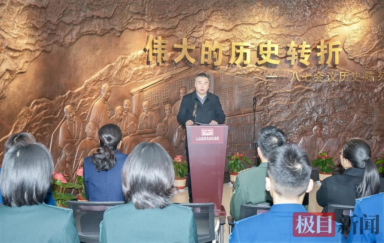 儀式現(xiàn)場(chǎng),江岸區(qū)人武部領(lǐng)導(dǎo)做動(dòng)員講話。他指出,八七會(huì)議是中國(guó)共產(chǎn)黨在革命危急關(guān)頭召開(kāi)的關(guān)鍵會(huì)議,總結(jié)大革命失敗教訓(xùn)、確立土地革命與武裝斗爭(zhēng)方針,為黨的武裝斗爭(zhēng)理論與實(shí)踐筑牢根基,在此開(kāi)展紅色解說(shuō)員隊(duì)伍建設(shè)意義深遠(yuǎn)。他強(qiáng)調(diào),全體解說(shuō)員要沉下心鉆研紅色歷史,深刻感悟革命先輩的堅(jiān)定信念與戰(zhàn)略遠(yuǎn)見(jiàn),錘煉富有感染力、說(shuō)服力的講解能力,既要講好武漢革命過(guò)往,更要聚焦當(dāng)下發(fā)展成果,生動(dòng)詮釋黨的偉大實(shí)踐在湖北、武漢的落地成效,讓紅色宣講更具時(shí)代溫度。