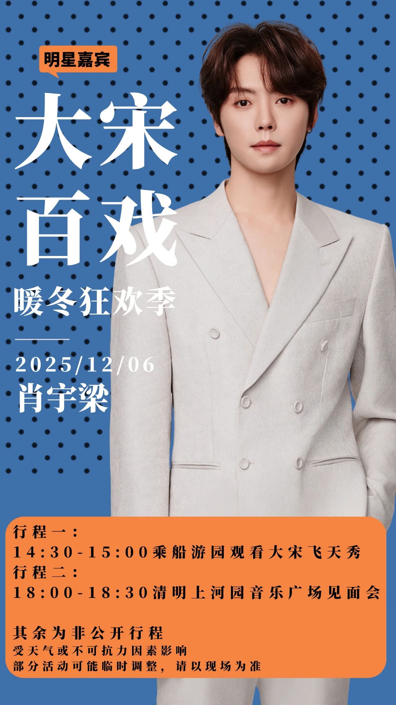 這個(gè)冬天,清明上河園寵你到底!你們想見誰,我們就邀請誰!人氣明星,一波接著一波!12月6日,呼聲超高的肖宇梁將空降清明上河園,與你們一起點(diǎn)燃冬日狂歡!