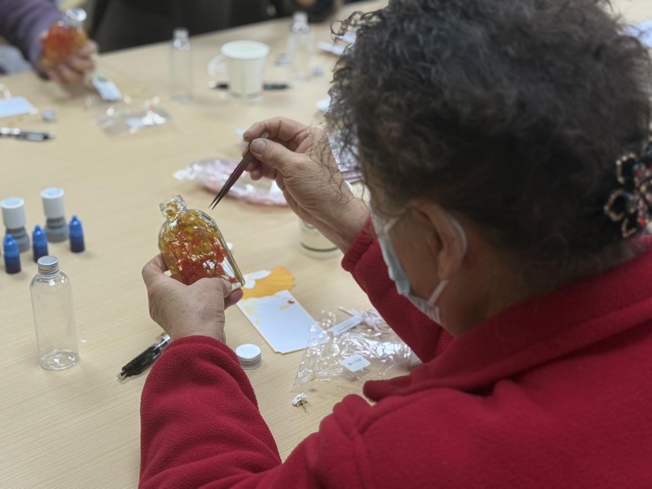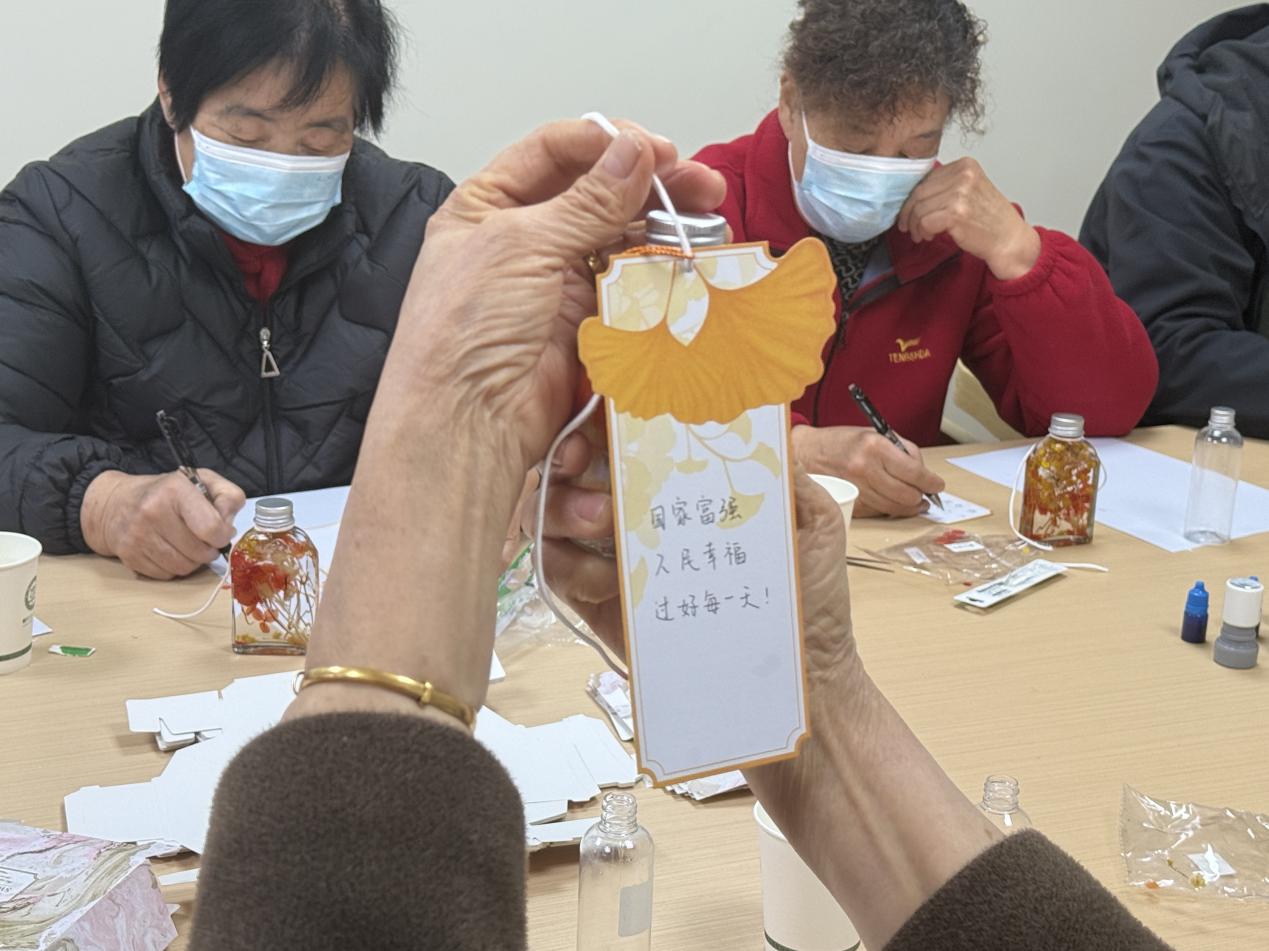 活動注重多維感官體驗與情感表達?!肮庵敢杯h(huán)節(jié)中,經(jīng)典詩句“如果冬天來了,春天還會遠嗎?”的深情朗誦,與畫面中由暗漸明的曙光影像交織,直觀地喚醒心中的樂觀與期待。備受喜愛的“希望許愿瓶”制作,則提供了一個將抽象情感具象化的藝術(shù)創(chuàng)作過程。居民們在輕柔音樂中書寫微小而具體的愿望,與象征時間與美好的干花一同封存,不僅創(chuàng)造了獨特的紀念品,更完成了一次賦予期盼以形態(tài)和儀式感的積極心理行動。