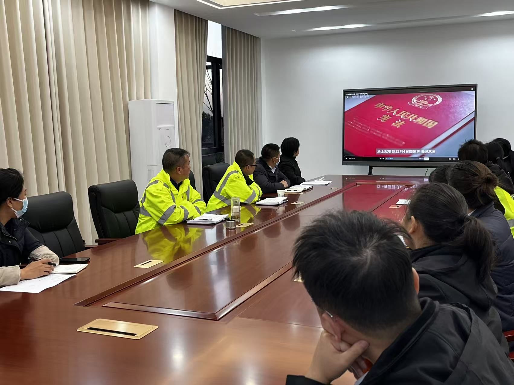 在收費(fèi)站會議室,屏幕上《中華人民共和國憲法》的封面莊重醒目,職工們集中觀看憲法宣傳教育片,系統(tǒng)學(xué)習(xí)憲法核心要義、基本原則以及與崗位工作密切相關(guān)的法治規(guī)范,“依憲履職、依法服務(wù)”的意識逐漸深化。大家紛紛表示,要將憲法精神融入日常收費(fèi)服務(wù)的每一個環(huán)節(jié),讓法治思維成為崗?fù)すぷ鞯摹盎緶?zhǔn)則”。