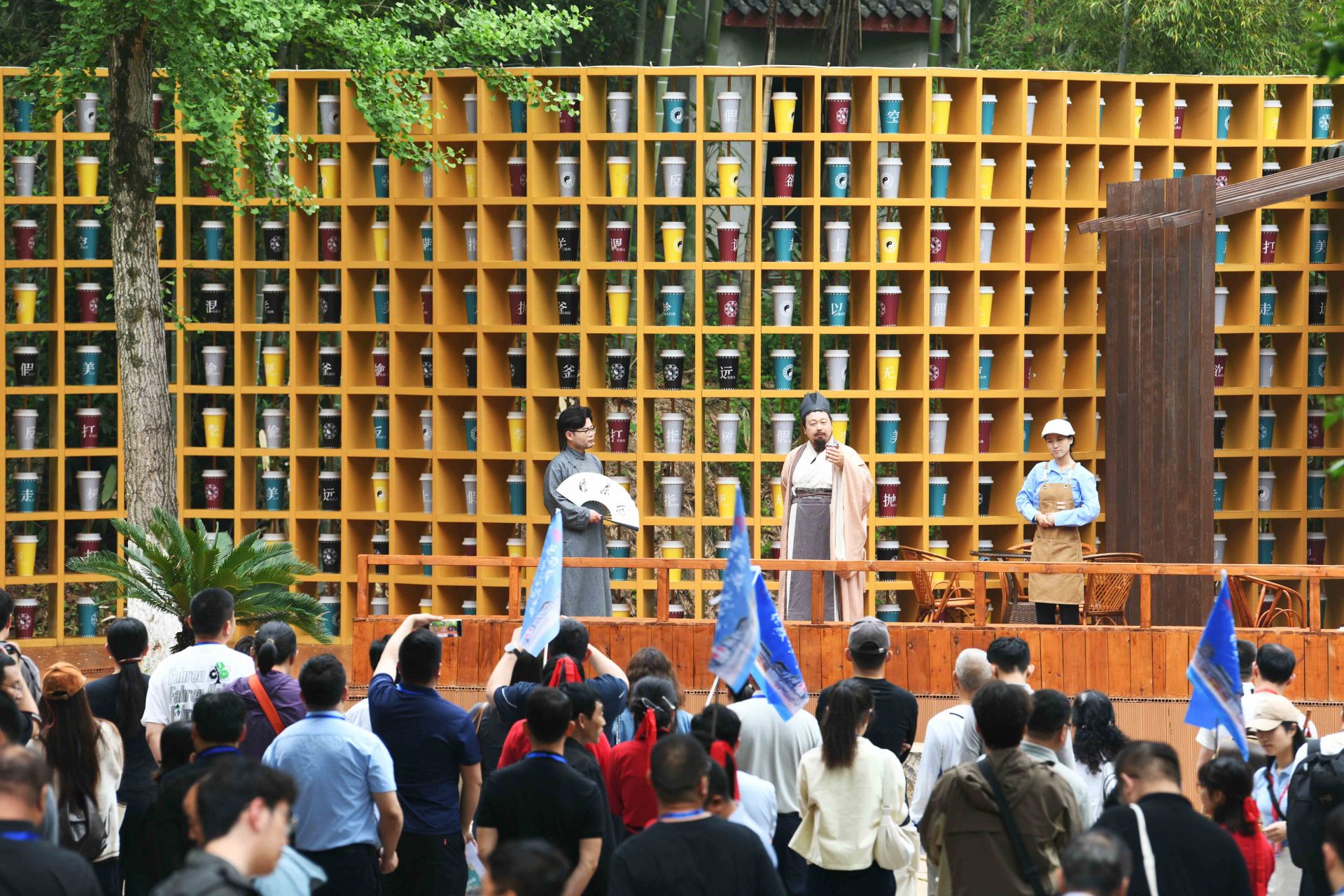 4月26日晚,三國(guó)赤壁古戰(zhàn)場(chǎng)景區(qū),《赤壁·借東風(fēng)》實(shí)景演藝劇全球首演。一名“說(shuō)書(shū)人”用現(xiàn)代人的口吻,串起一部三國(guó)與現(xiàn)代的穿越?。何枧_(tái)上,演員、道具、光影重現(xiàn)“草船借箭”“苦肉計(jì)”“空城計(jì)”等歷史典故;看臺(tái)上,游客化身將士,隨劇情節(jié)奏拍打赤壁非遺——腳盆鼓(相傳為孫劉聯(lián)軍赤壁之戰(zhàn)鼓舞士氣的樂(lè)器)……現(xiàn)場(chǎng),觀眾與演員深度融合,沉浸式體驗(yàn)三國(guó)英雄氣概,仿佛一場(chǎng)跨越千年的對(duì)話。