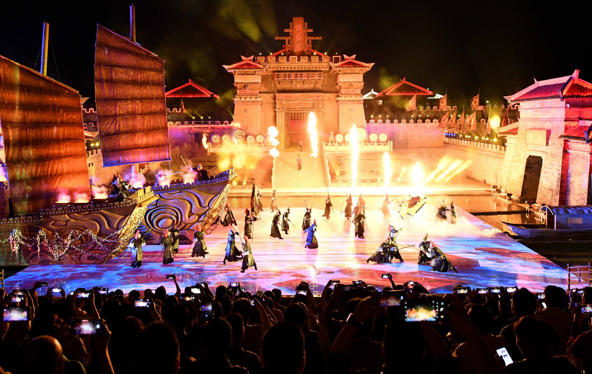 熊熊燃燒的烈火,箭矢破空的銳響,戰(zhàn)鼓擂動(dòng)的轟鳴,配上光影、水霧等特效,讓人仿佛置身金戈鐵馬、智謀激蕩的三國(guó)古戰(zhàn)場(chǎng),親歷那場(chǎng)“以少勝多”的赤壁之戰(zhàn)。