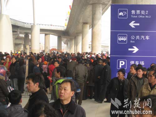 武漢站售票廳外廣場乘客等待上車