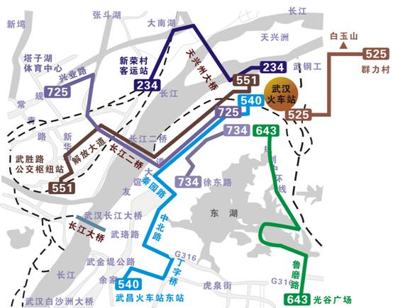據(jù)悉,春運(yùn)期間,將根據(jù)客流變化情況,調(diào)整增加武漢站上述7條公交線路運(yùn)力,還將開通武漢站至漢口站的大站快車線路。走向為:武漢站經(jīng)白云路、團(tuán)結(jié)大道、建設(shè)十路、友誼大道、長江二橋、黃浦大街、發(fā)展大道、常青路至漢口站。