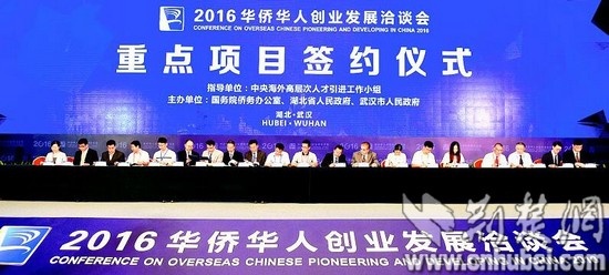 湖北日報訊(記者周呈思)昨日上午,在2016華僑華人創(chuàng)業(yè)發(fā)展洽談會重點項目簽約儀式上,數十位中外簽約代表分三組上臺,集中簽約29個項目,包括10個人才項目、19個投資項目,其中投資過億元的項目達18個。