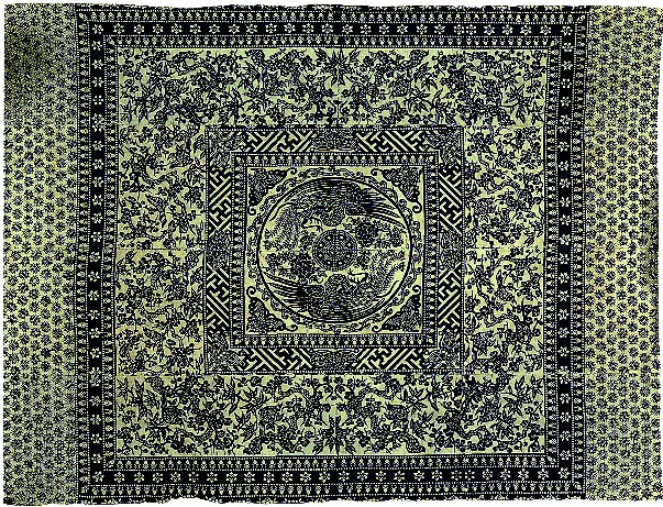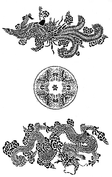 藍(lán)印花布遍及湖北全省,尤以天門(mén)藍(lán)印花布最負(fù)盛名。其特點(diǎn):1、藍(lán)與白的選擇,藍(lán)白兩色并非吉祥色,然而經(jīng)過(guò)藝人們的巧妙的藝術(shù)處理,使人感到清新明快;2、虛與實(shí)的結(jié)合:以點(diǎn)組成線,以線組成面,若合若離,似為一體,實(shí)又分離。
